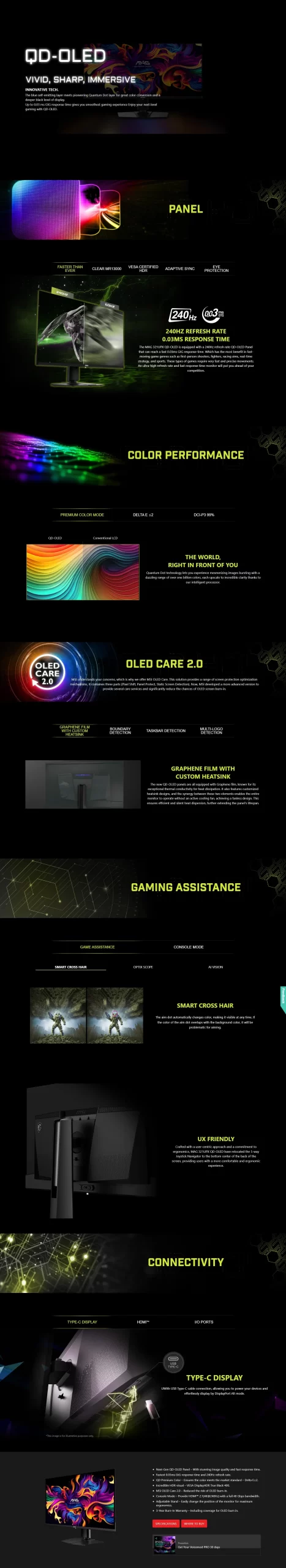 Unleash the power of next-gen visuals with the MSI MAG 321UPX QD-OLED gaming monitor! This 31.5-inch display boasts: